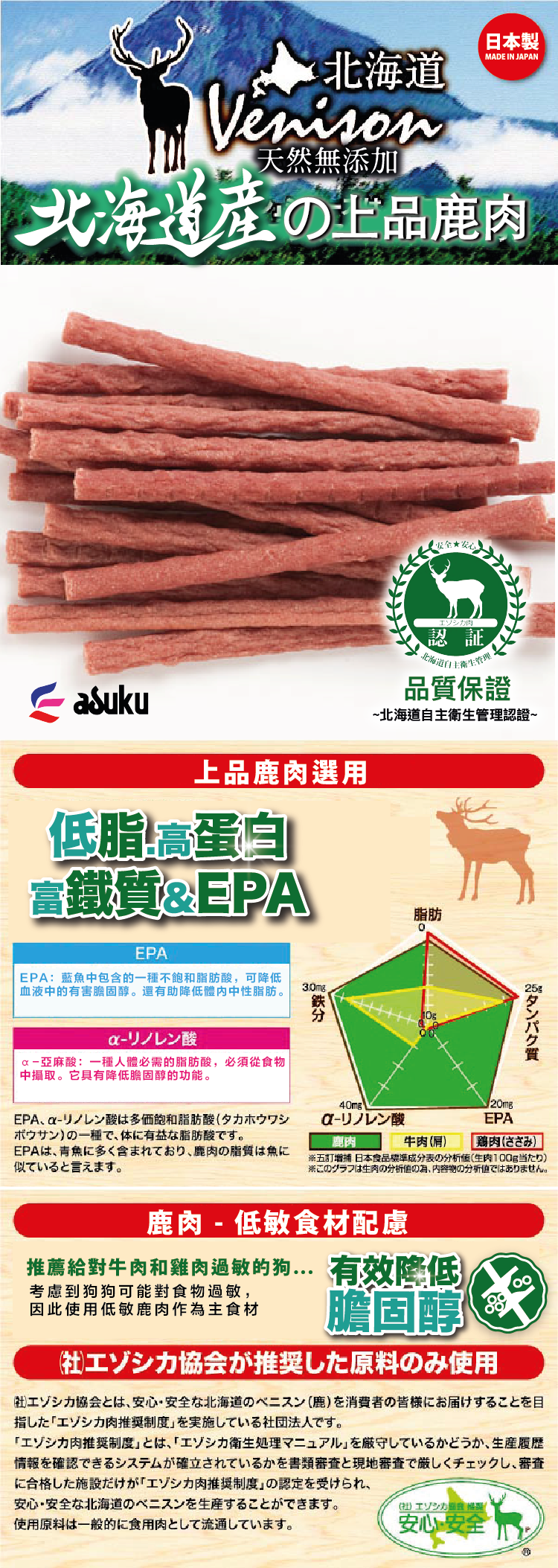 Asuku|鹿肉長棒 150g (AU-7231)