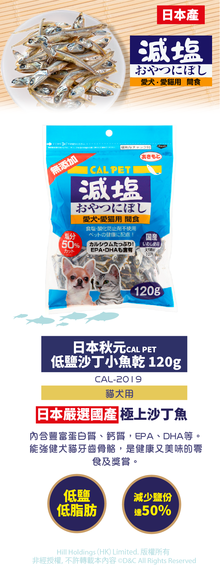 Cal Pet丨犬貓用低鹽沙丁小魚乾100g (CAL-2170)