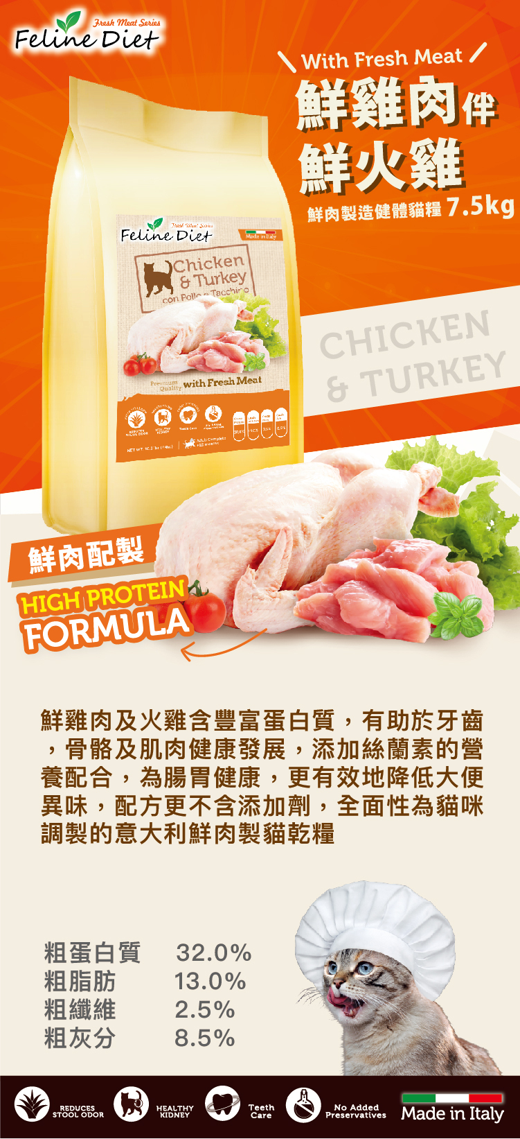 Feline Diet丨鮮雞伴火雞配方貓乾糧 7.5kg (FD-03)