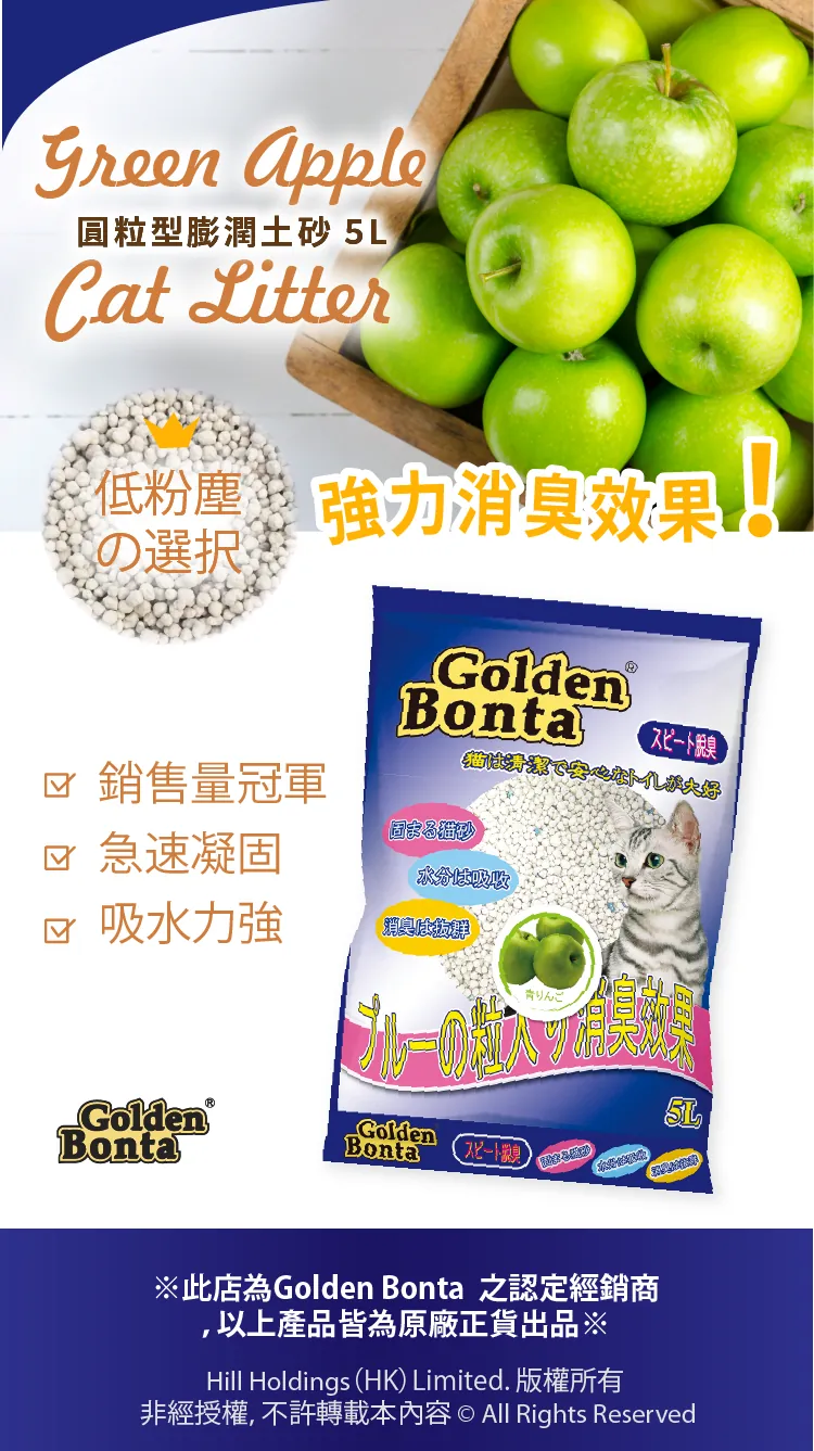 Golden Bonta丨圓粒型膨潤土砂 (青蘋果味) 5L (GOBW-04)
