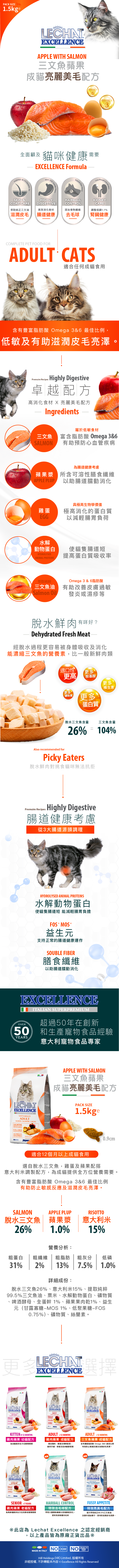 Lechat Excellence®丨三文魚蘋果成貓美毛配方1.5kg (LE-9800)