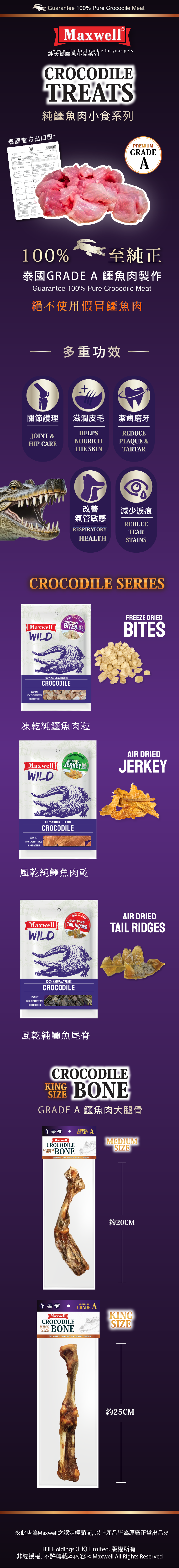 Maxwell®⎜泰國風乾優質鱷魚骨 x 2支 (MXA-4224)