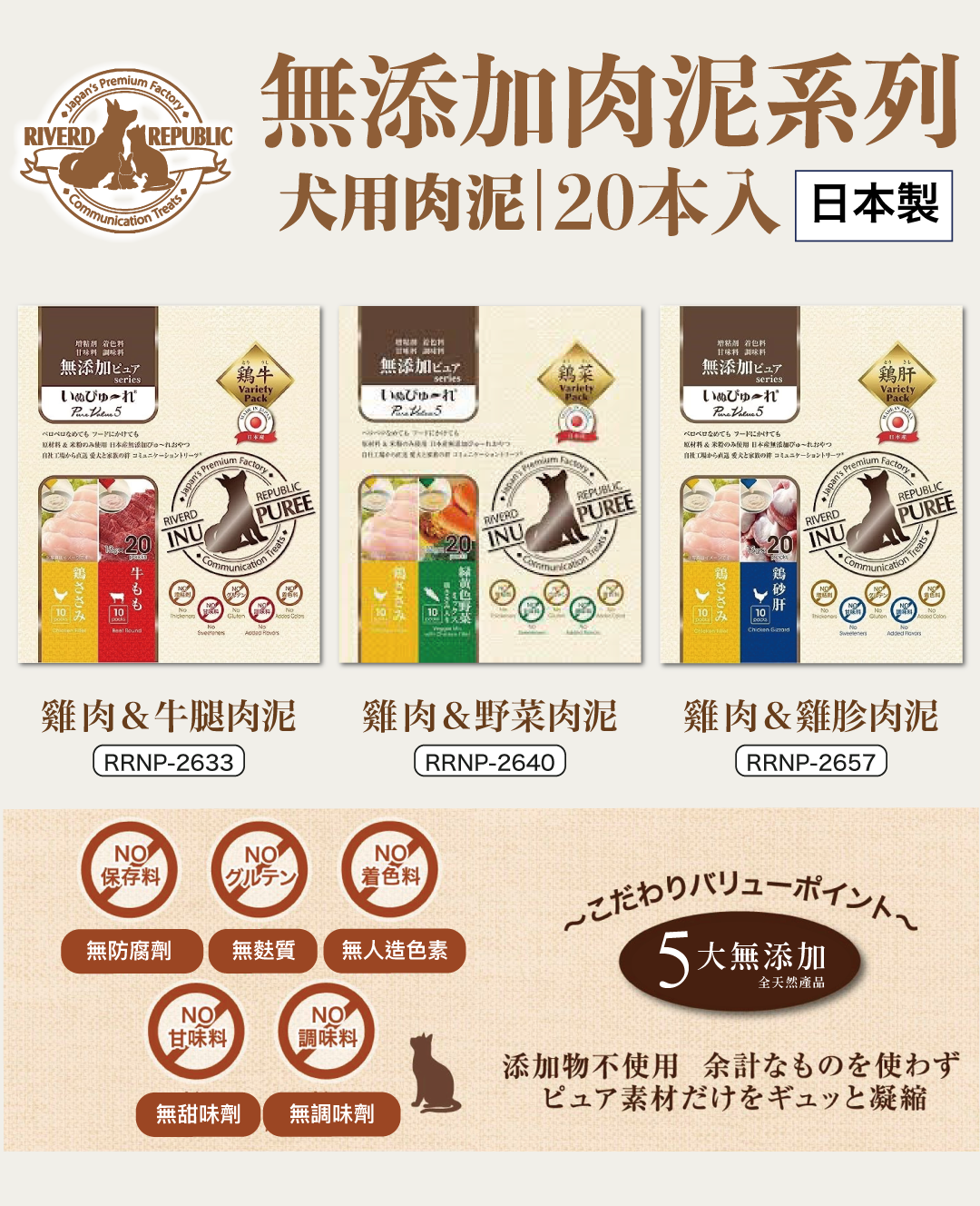 日川丨日本無添加雞肉/野菜肉泥 (犬用) 20本 (RRIP-2640)