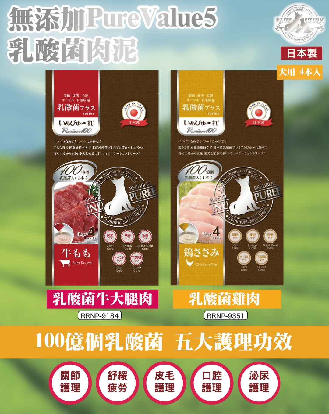 日川丨乳酸菌牛腿肉肉泥 (犬用) 4本 (RRIP-9184)