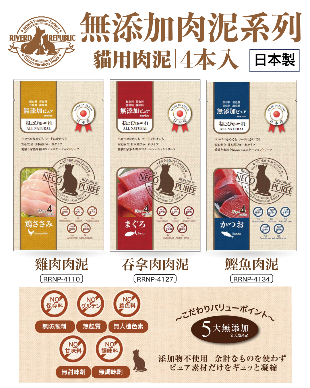 日川丨日本無添加吞拿魚肉泥 (貓用) 4本 (RRNP-4127)