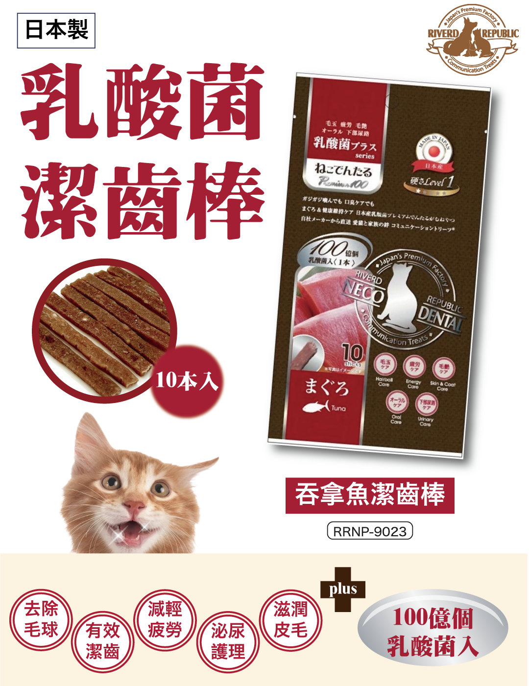 日川丨 乳酸菌吞拿魚貓咪潔齒棒 (貓用)10本 (RRNP-9023)